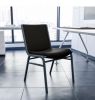 VL616 Stacking Guest Chair with Arms, Bonded Leather Upholstery, 23.25" x 21" x 32.75", Black Seat, Black Back, Black Base